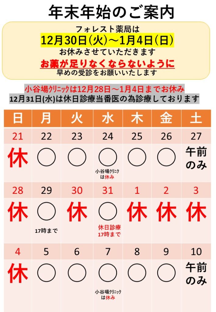 年末年始は大変混み合いますのでお薬のお渡しに時間が掛かることがございますがご理解ご協力よろしくお願い致します!!